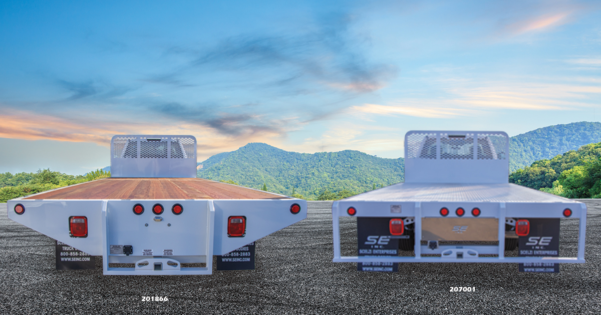 These Scelzi flatbed models each have a unique set of standard features. See the Front Range, RV Hauler, and Cowboy truck bodies.